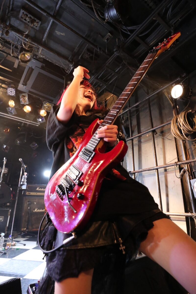「メインはタウラスの真空管アンプヘッドを使用し、更にTS9で余分なハイを落として大好きなMarshallらしい音に近づけています。ソロの音色はEQの細かな設定とブースターによる音量調整でカスタムしており、どの環境でも抜ける音作りを心掛けています!!」(あにゃ)