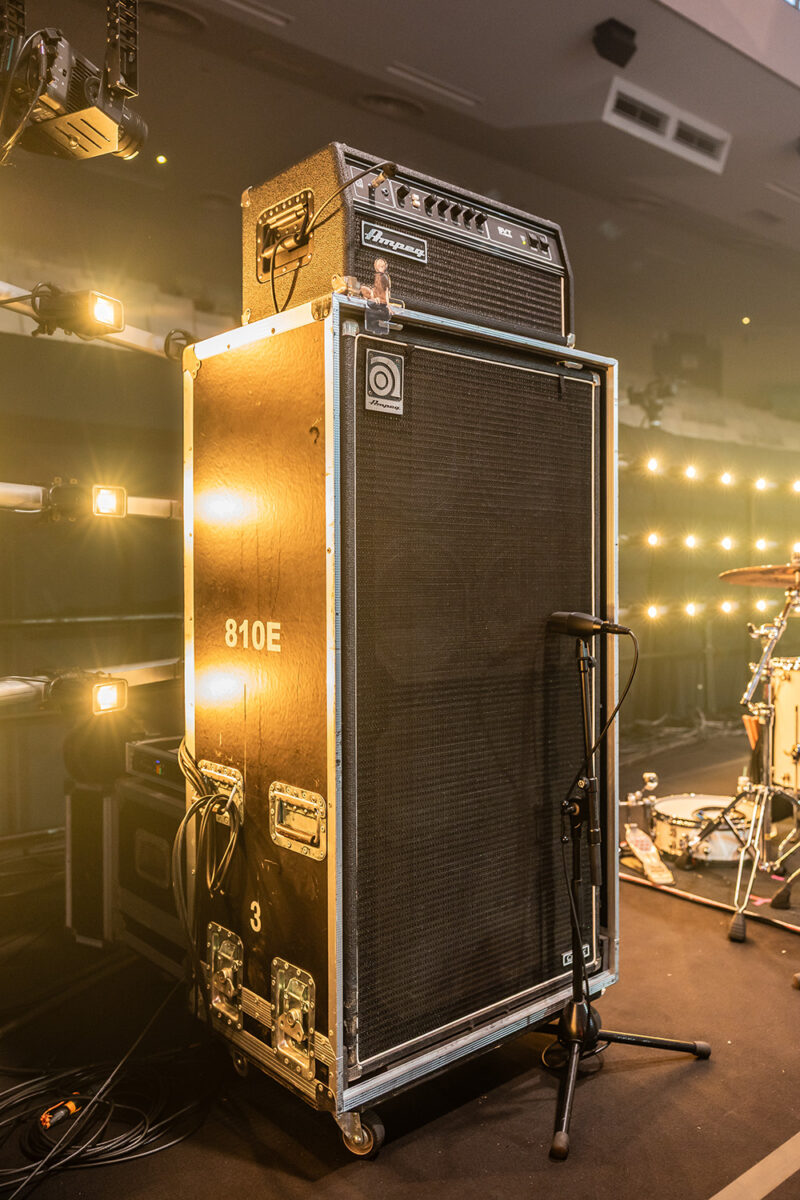 アンプはヘッドがAmpeg SVT-CL、キャビネットがAmpeg SVT-810E。