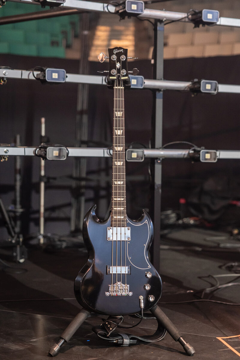 2ndワンマンライブ「凛音の理」からライブで使用し始めた、朱李が「ガールズバンドクライ」で演じたルパが愛用するGibson SG Bass。市販のモデルと比べるとトーンノブとアウトプット・ジャックの位置が逆になっているが、改造ではなく新品購入時からこの仕様であったという。