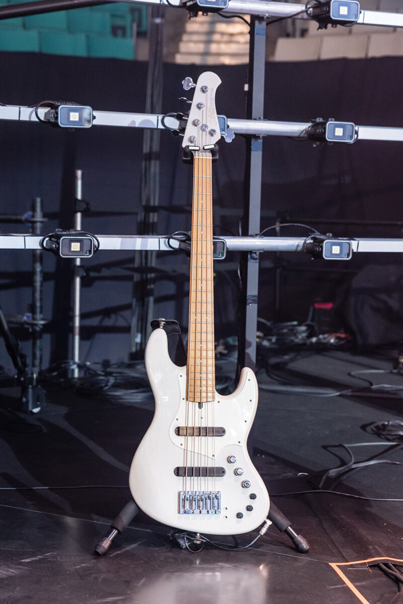 以前より朱李が愛用しているXotic製の5弦ベース。モデル名に記載の通りリンディ・フレーリン製のピックアップを搭載し、アッシュボディ/ローステッドメイプルネック&指板仕様の1本だ。