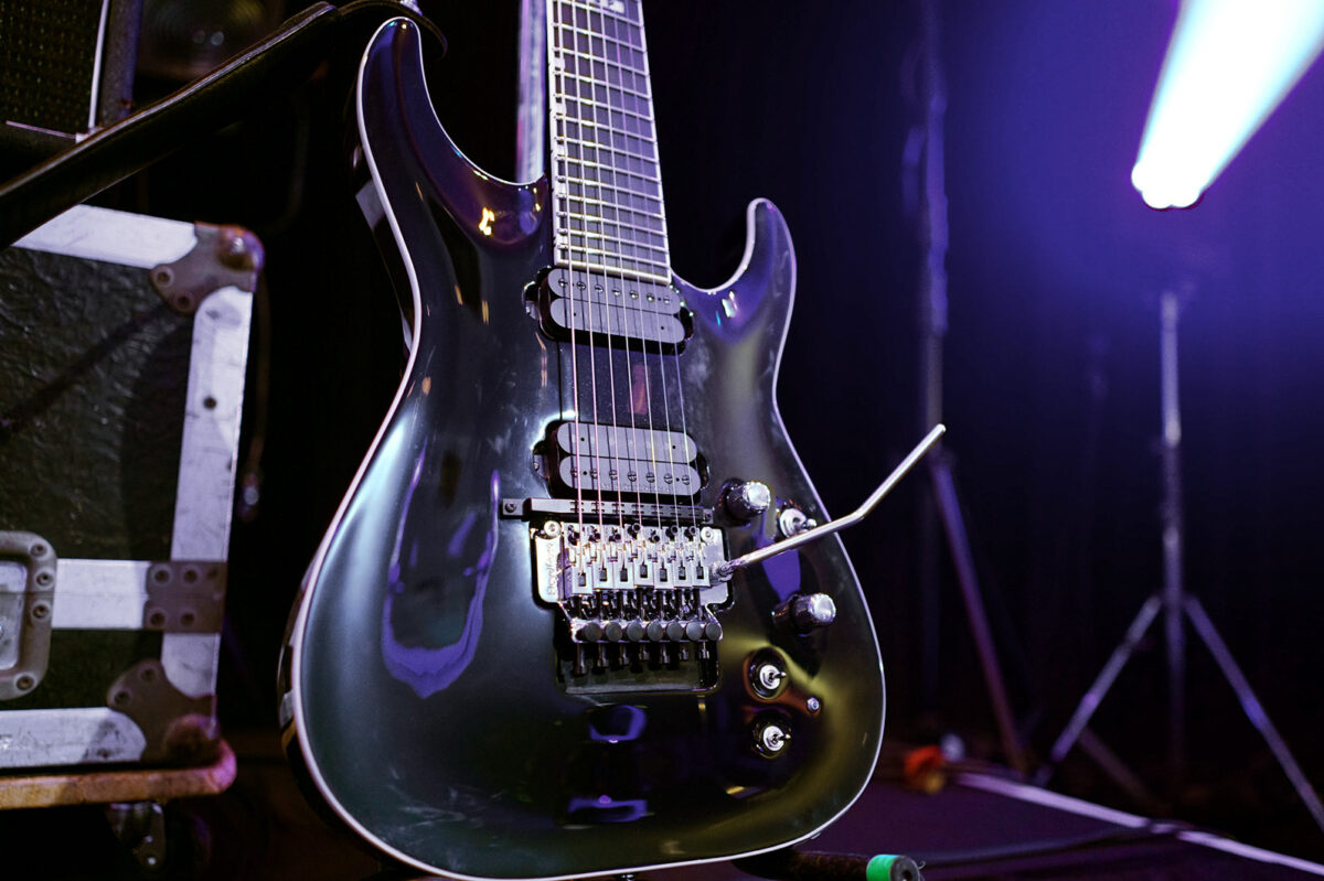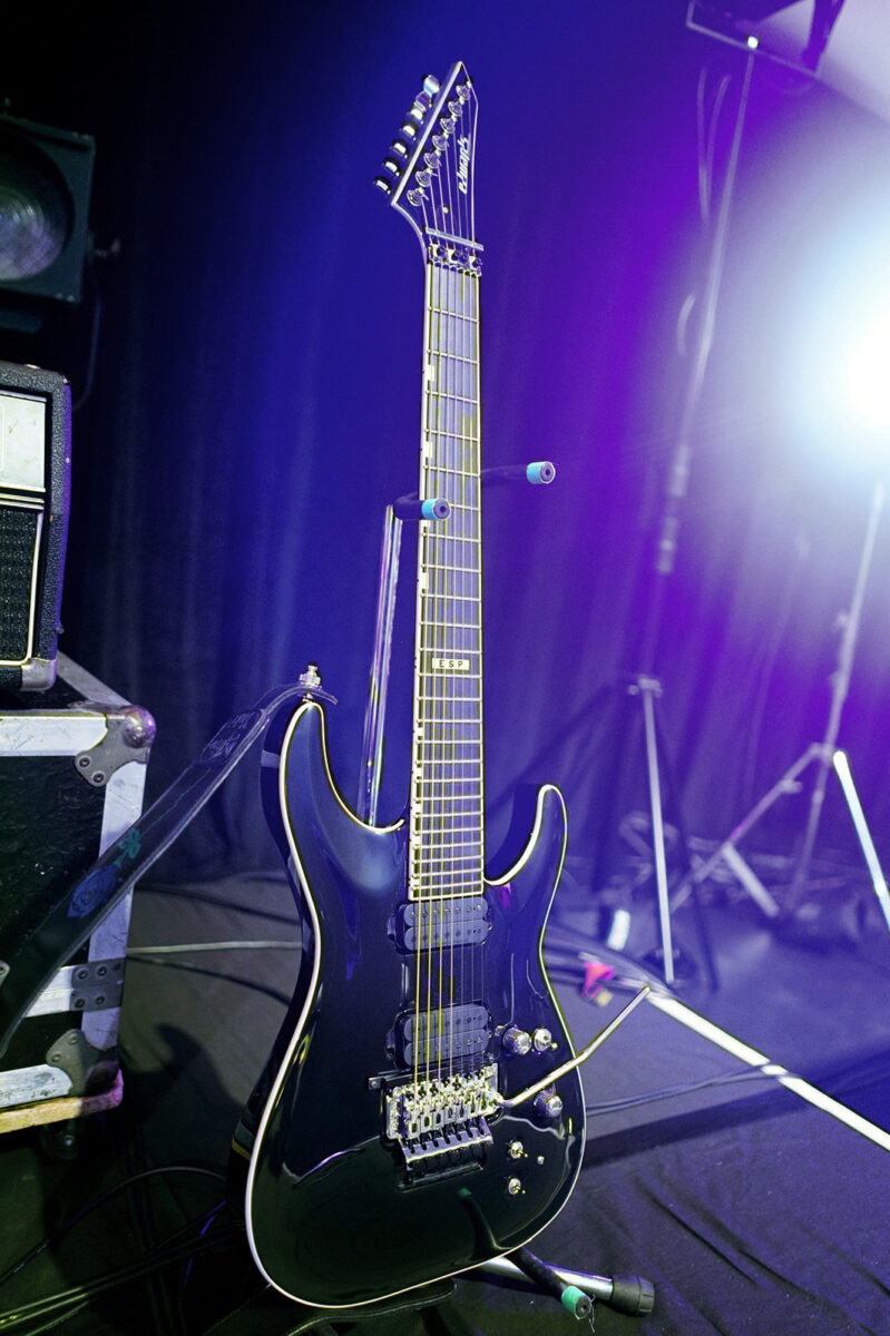 Yukiの新たな武器となるEdwards製の7弦ギター。リアピックアップとブリッジの間には、ギター・シンセサイザー・システムに対応するディバイデッド・ピックアップGK-5(GK5-KIT-G7)が組み込まれている。