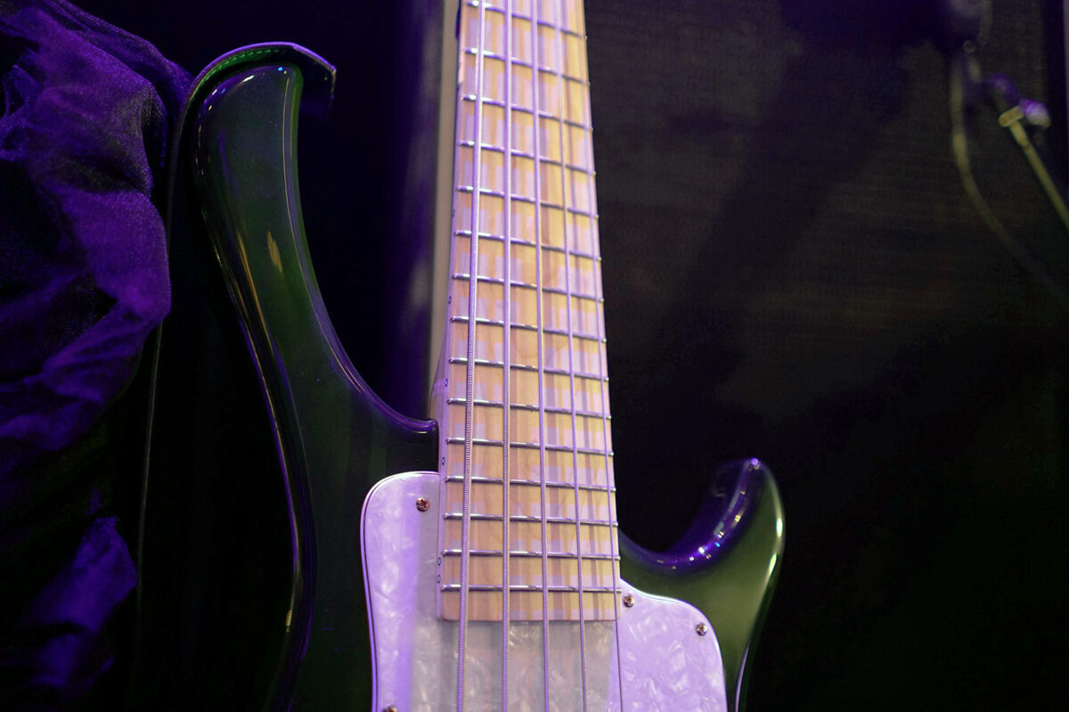 Sago New Material Guitars製のMINAシグネチャーモデルDullahanの5弦モデル。同じくSago製のMINAモデルClassiv Style JMB5 Customも用意されていた。