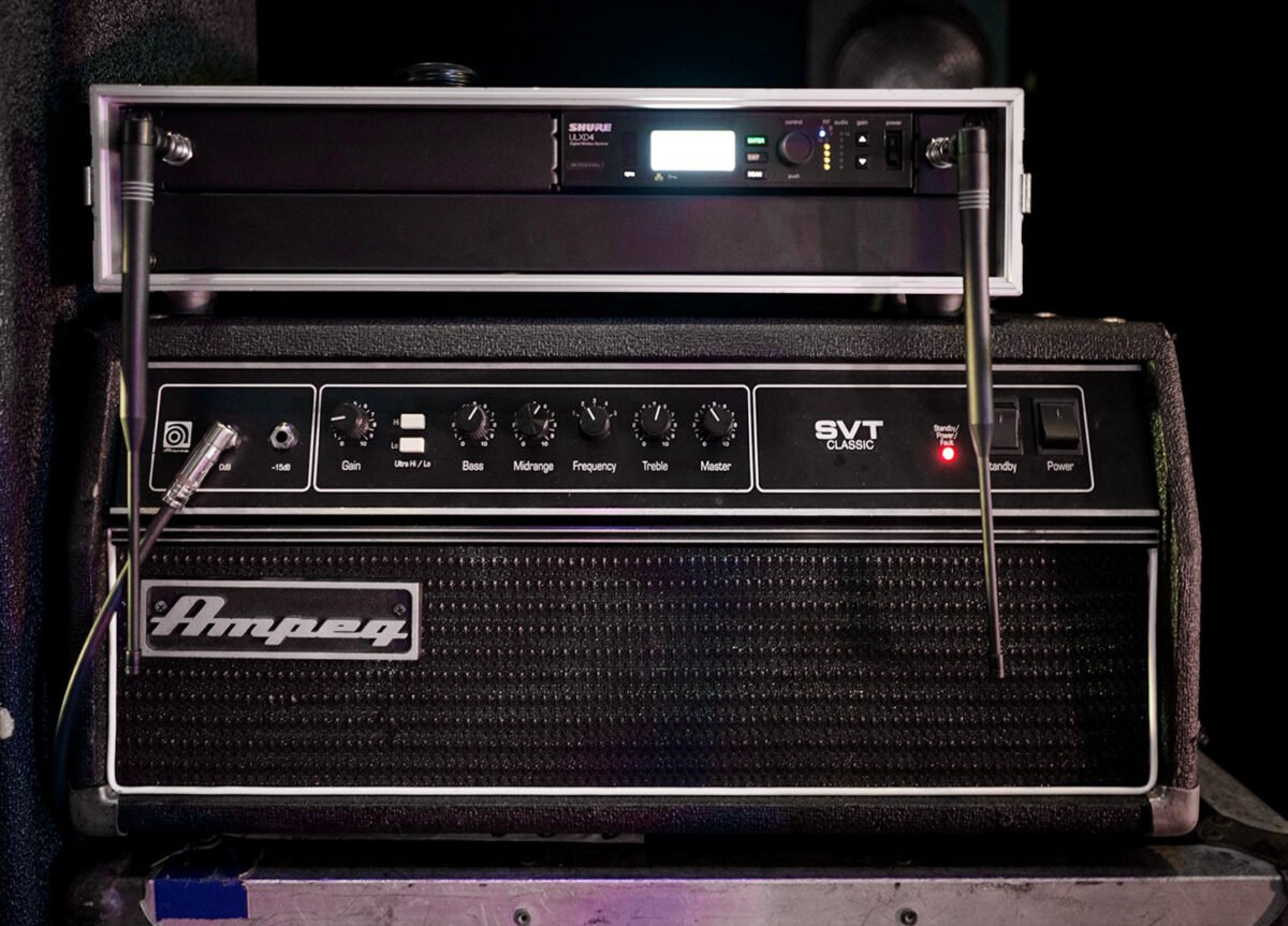 アンプはヘッドがAmpeg SVT Classic、キャビネットがAmpeg SVT-810E。
