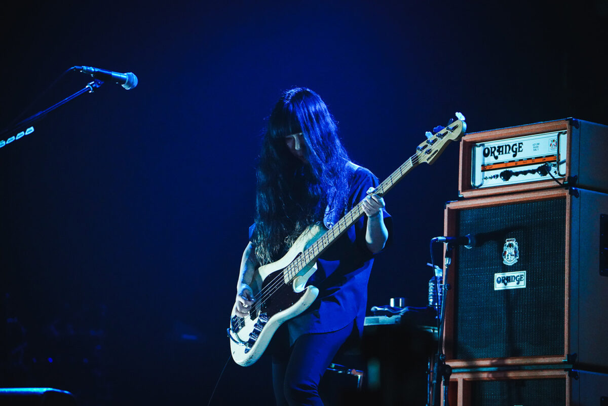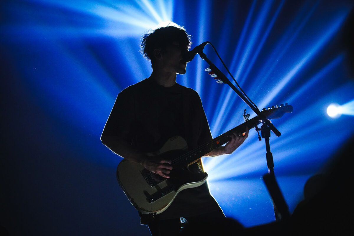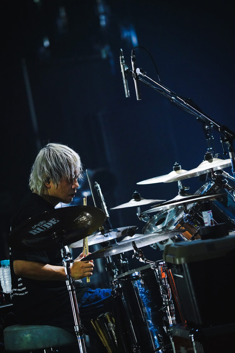 この空間を歪(ゆが)んだ音で歪(ひず)ませるように、凛として時雨は『DISCO FLIGHT』を演奏。言葉を切るように歌うTKの歌声が身体へ突き刺さる。ときにノイジーな音も炸裂させながら、3人は観客たちの意識を彼方へぶっ飛ばし続ける。叫ぶTKと高い声でエモーショナルに歌う345の歌が絡み合う様も強烈なインパクトを与えていった。