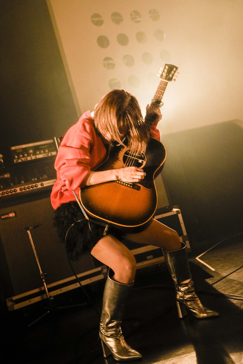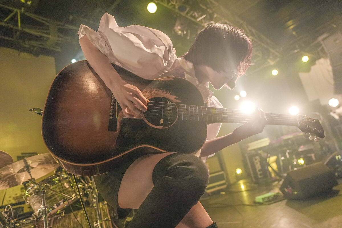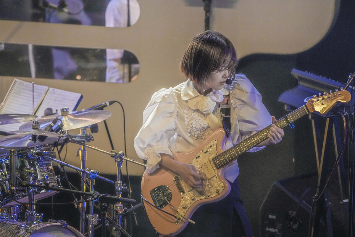 次のブロックでは、アコースティックギターを手に演奏。『Silver Shoes』は、Reiにソングライターとしての自信を与えた楽曲。ドラムのキックビートを背景に、アルペジオで弦を爪弾きながら、透明感のある優しい歌声を響かせる。そこへ重なるベースや鍵盤の音色。とても歌心を持った、触れた人の気持ちの琴線をキュッと鳴らす、エモーショナルでスウィートな楽曲だ。軽やかな演奏の上で、心を解き放つように歌う姿に惹かれ、ずっと視線を外せなかった。甘く優しい、でも、高らかに響き渡るサビ歌に触れているだけで、気持ちが幸せで満たされていく。