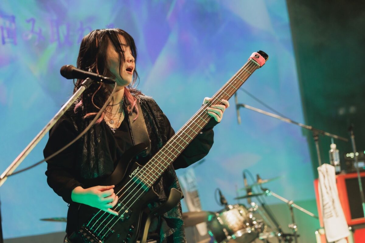「バンドが一番輝ける場所はこのステージだと思います。こうやって4人でステージに立てているのは、みなさんのおかげです。感謝しています。ありがとうの気持ちを直接伝えられるのもステージの上だからこそ、最後の一音までありがとうの思いを込めて弾きますので、みなさんも最後の一音まで受け止めてください」(ERIKA)