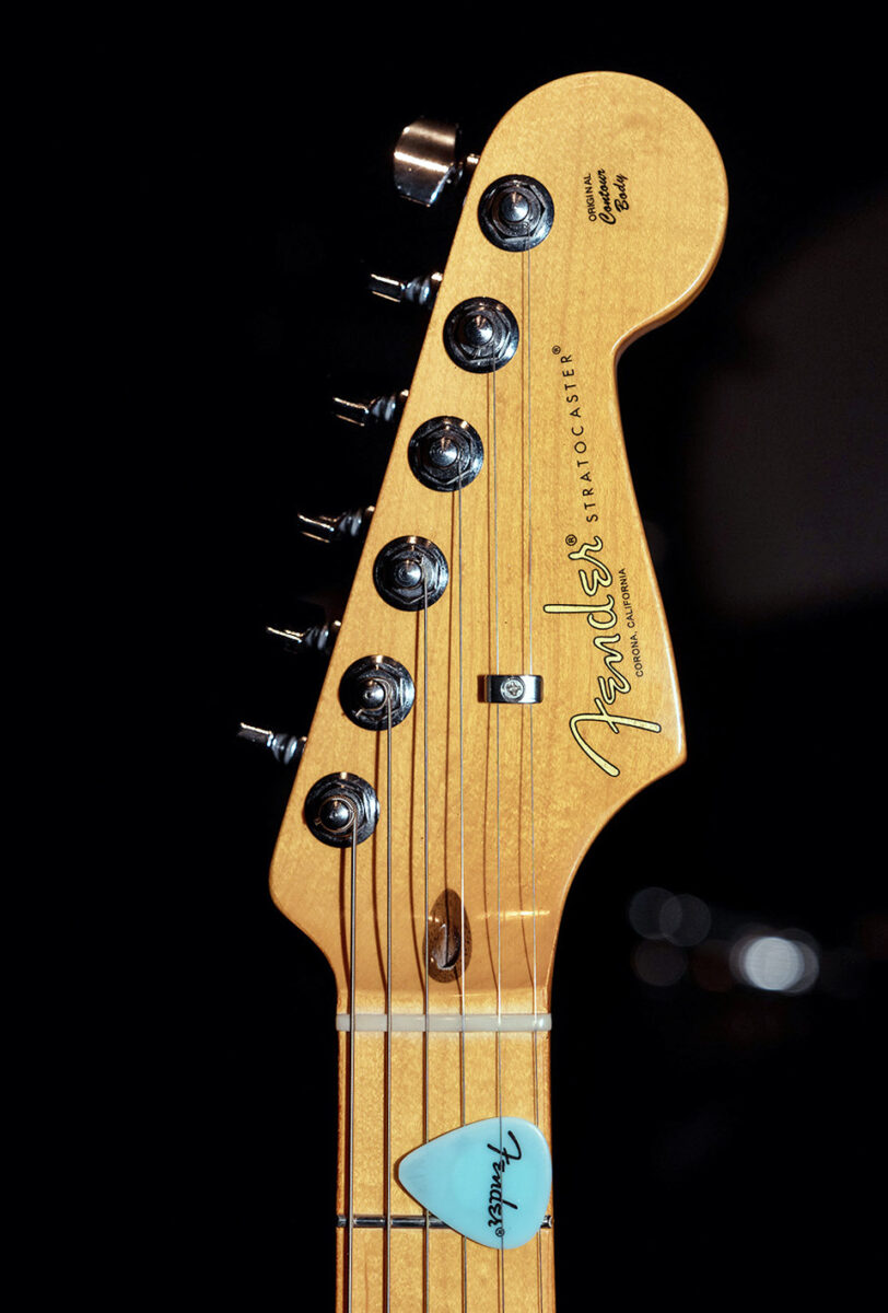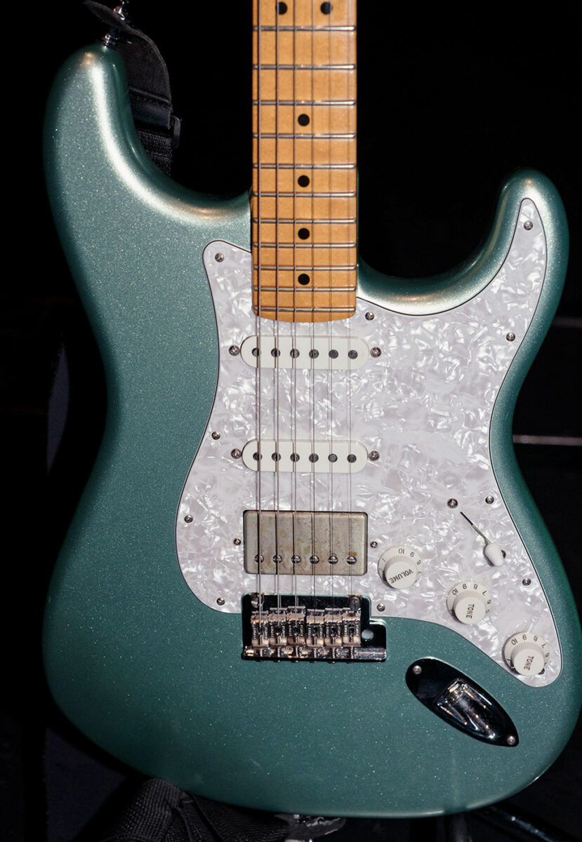 アルダーボディ、メイプルネック/指板の王道のストラトキャスターのリアピックアップにハムバッカーが搭載されたHSS仕様の一本。ピックアップ及びピックガードはオリジナルから変更されている。