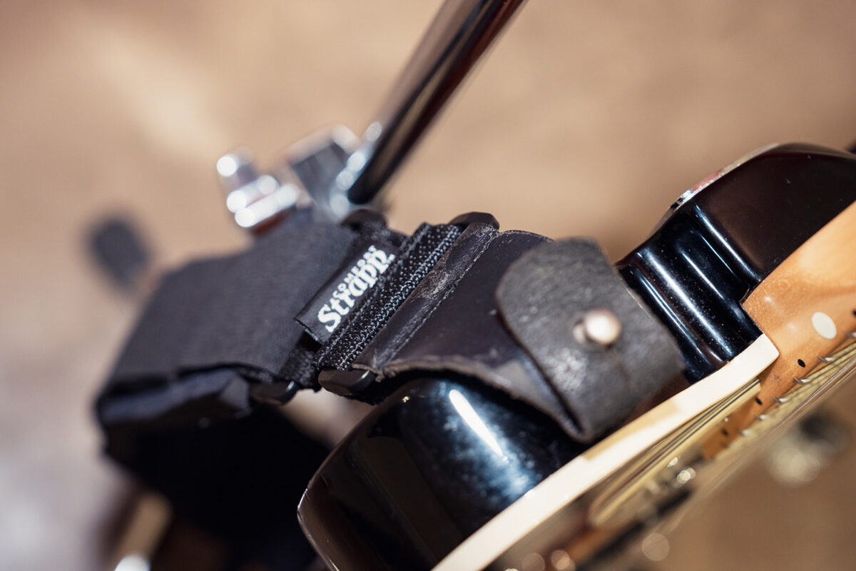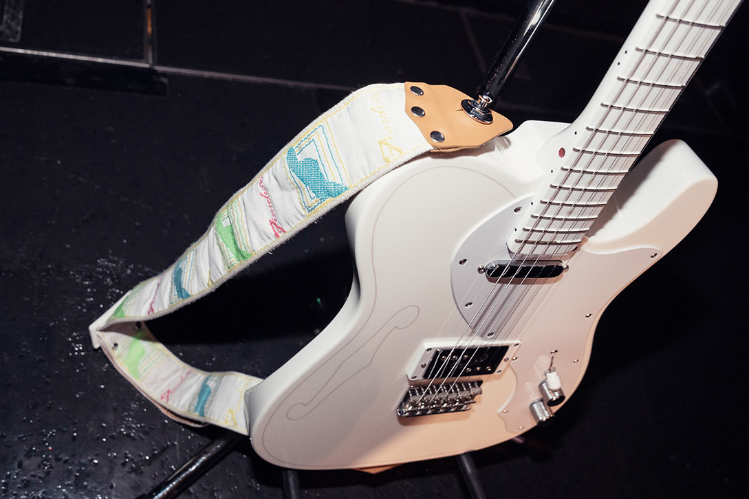 2019年12月にすぅのシグネチャーモデルとして発売もされたSILENT SIRENテレキャスター。デザインからシェイプや仕様まですぅがこだわって完成させたモデルだ。使用されているストラップはFender Hama Okamoto Signature Strap。Fenderの伝統的なモノグラムストラップをベースにカラフルでポップな配色がされている。