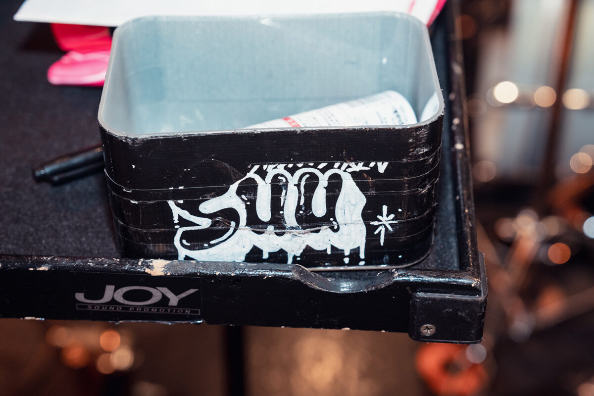 マイクスタンドのピックホルダーに挟んであるのはすぅのシグネチャーピックFender Artist Signature Pick Sumire Yoshida(351シェイプで厚さはMediumとHeavyの中間程度)だ。先に紹介したギターのネック部分で弦に挟んであるのも同じピック。