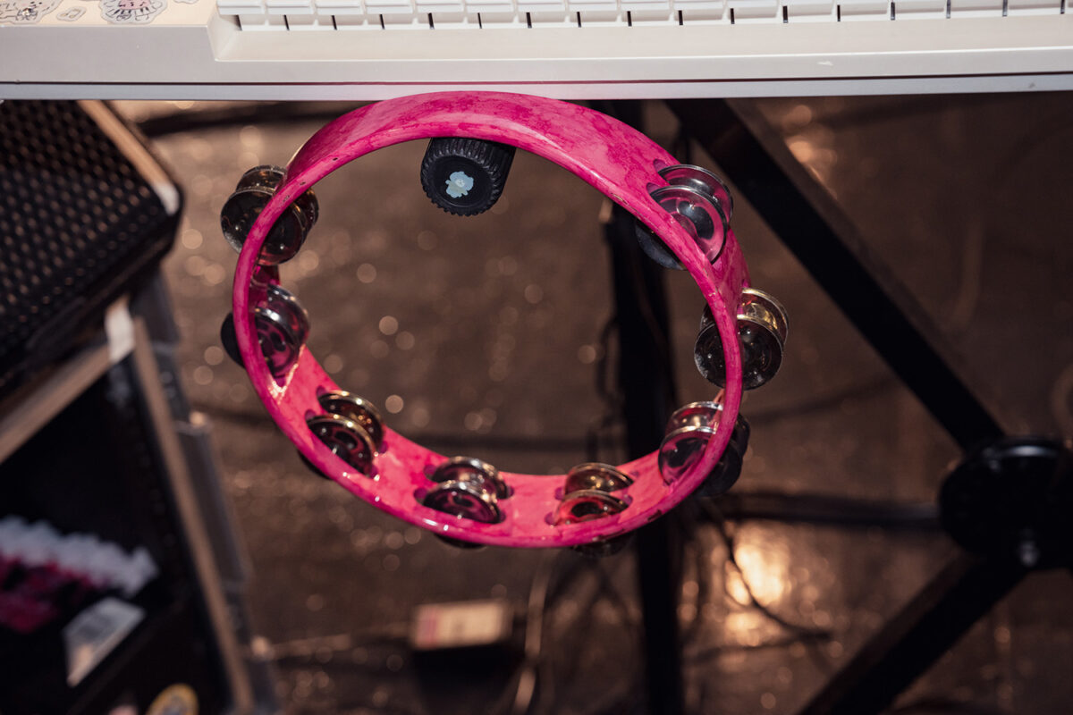 キーボードスタンドにはタンバリンも掛けられていた。