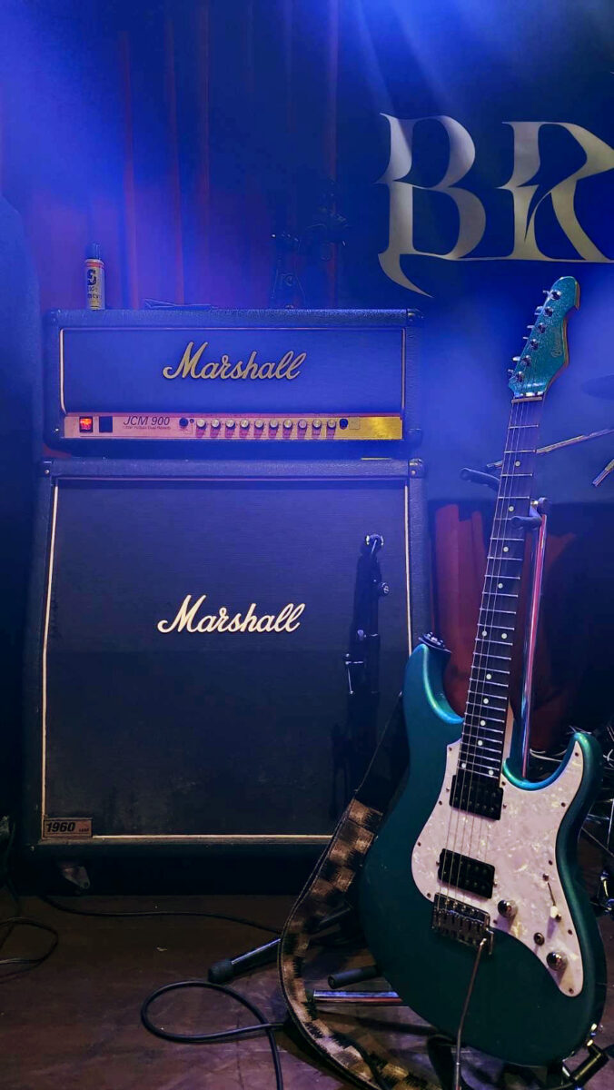 アンプはMarshall JCM900 100W Hi Gain Dual ReverbヘッドとMarshall 1960A LEADキャビネットの組み合わせを使用。