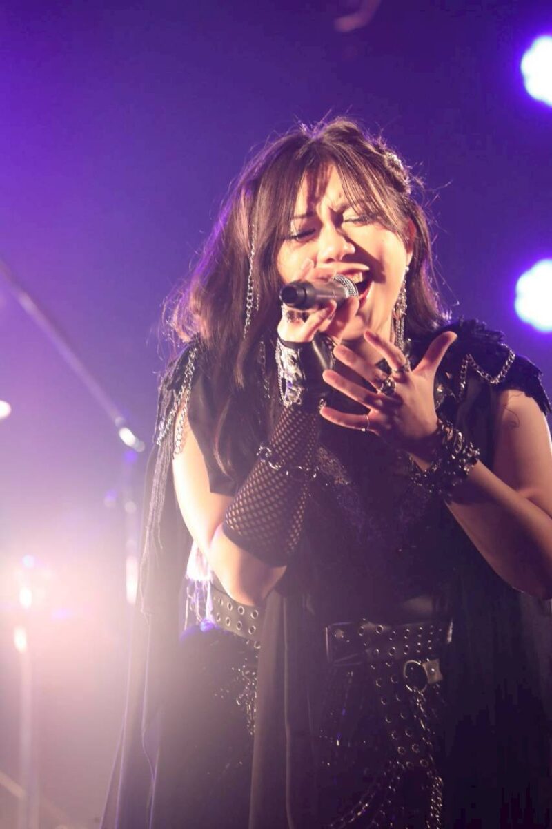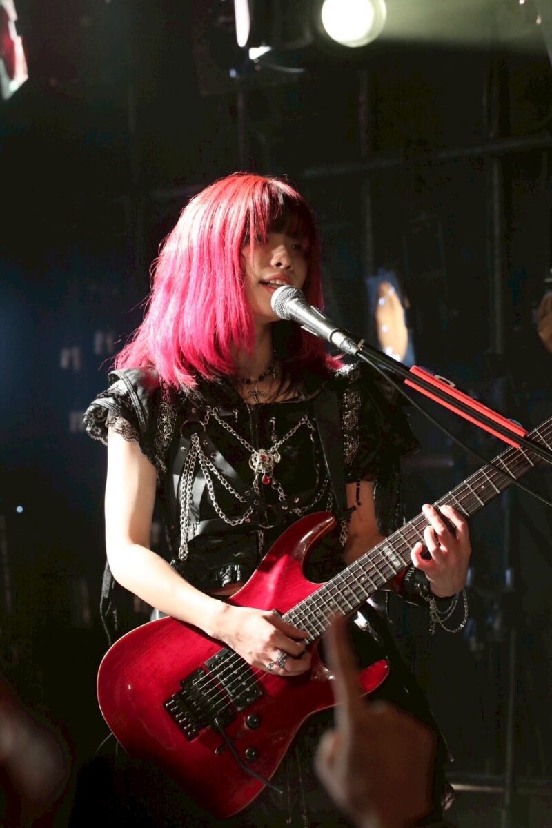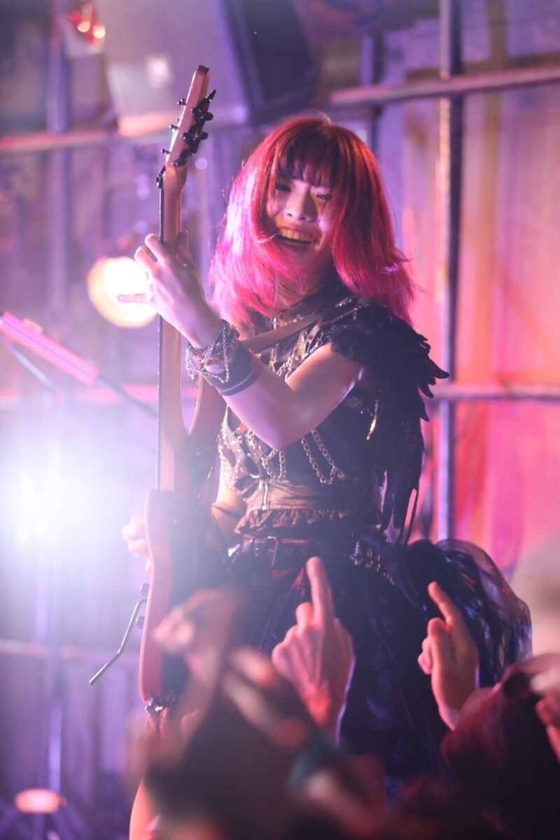 その意志を示すように、Amiのパワフルなドラムの演奏から幕を開けた『Reflection in the Darkness』でも5人は、Miwaとメンバーたちのかけあいも含め、ノイズにも似たリフを次々と繰り出し、観客たちの理性をぶっ壊していく。破顔した姿でギターソロを弾くあにゃ、対象的にクールな表情でギターソロを重ねてゆく菫。そのコントラストも魅力だ。