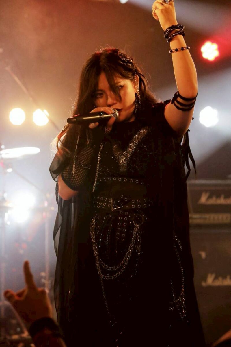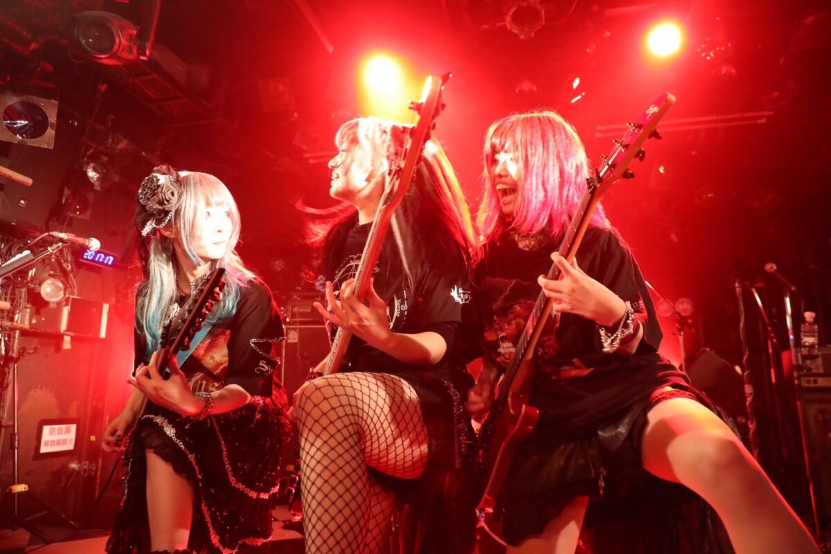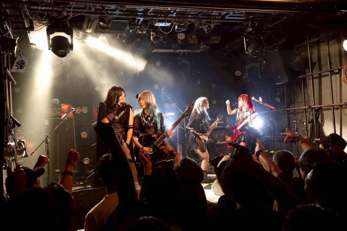 そのうえで彼女たちは、メロハーな『LUCIFER』を叩きつけ、気持ちも身体もエモく激しく揺さぶりだす。無数の拳が突き上がる、その様が圧巻だ。この曲では竿隊の3人が横一列に寄り添い、演奏をする場面も見せていた。ヘヴィメタルの悪魔と口づけを交わした彼女たちの雄々しくも攻撃的な姿に熱狂せずにいられない。そして…。