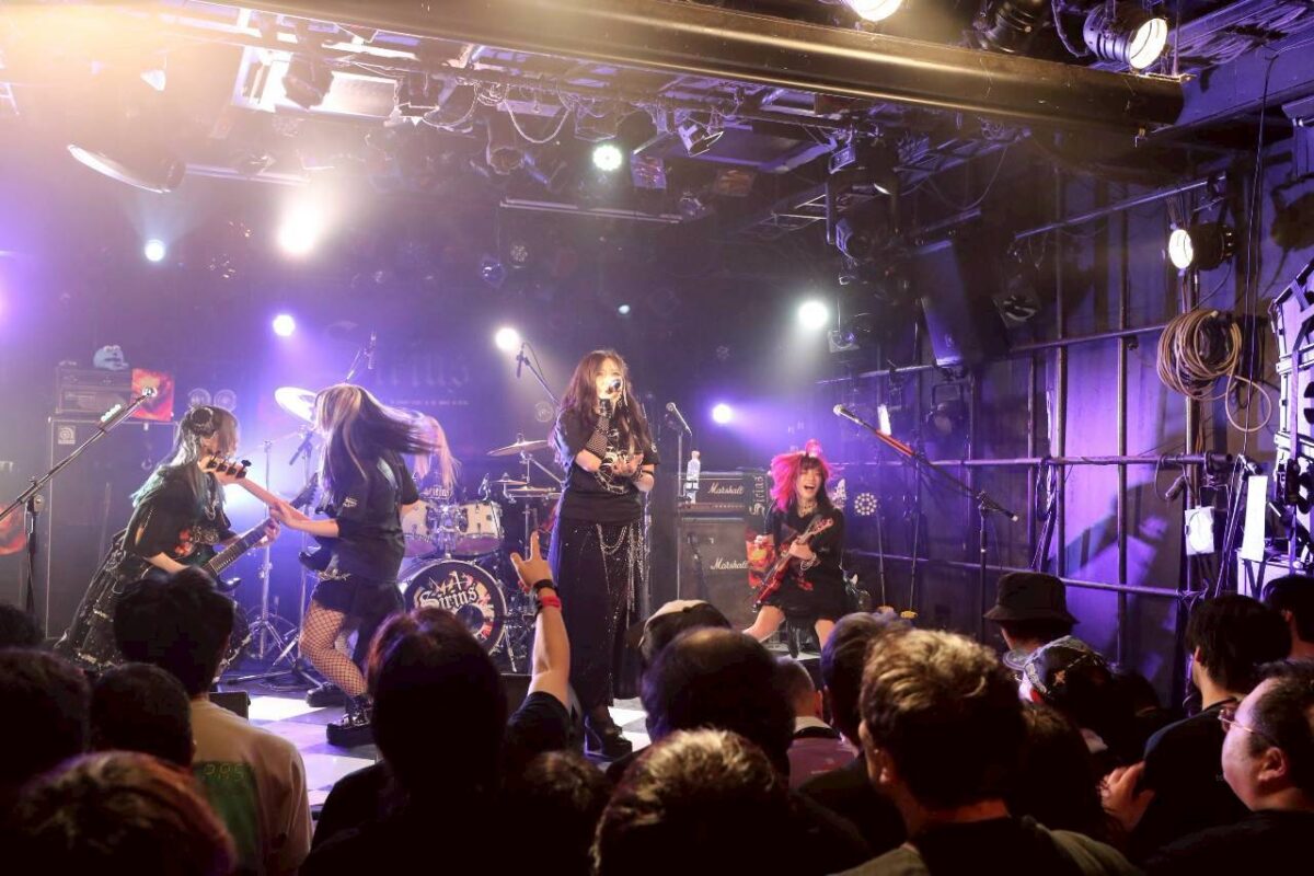 手数の多いAmiのドラムプレイを合図に、あにゃ、菫、みさ、それぞれの演奏にスポットを当てた上で、Miwaが「もっと声出せ!」と観客たちを煽りだす。Siriusは、攻撃的な音にさらに磨きをかけて観客たちを攻めだした。身体を突き刺す重厚な音を武器に、『Playing Games』を演奏。ギターソロを繰り出すあにゃの背中にみさが寄り添い演奏をする姿も、嬉しいインパクトだ。フロントに4人が居並び歌と音を突き刺す。勇ましいその姿が気持ちを熱く揺さぶる。