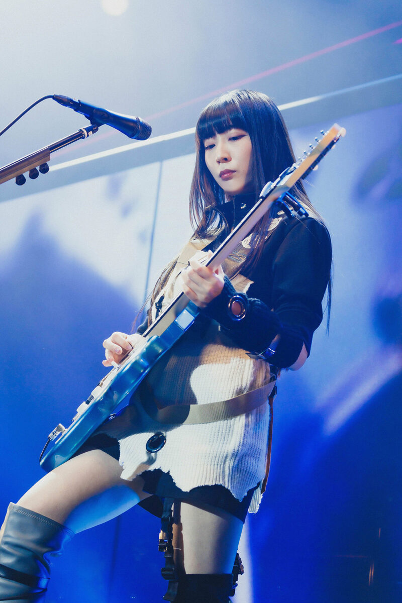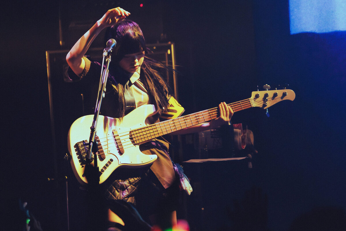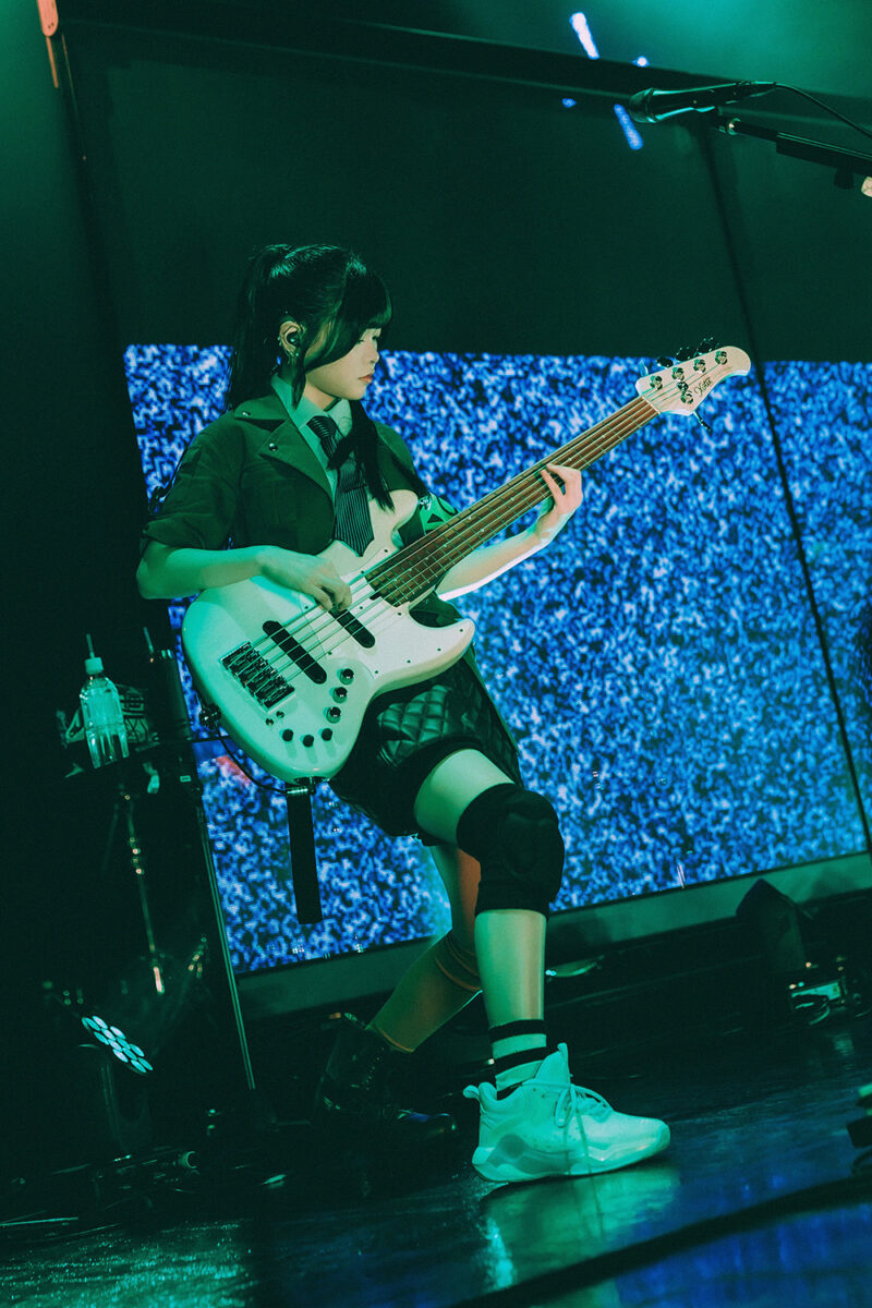 意味深な雰囲気を纏ったまま、ステージは朱李のベースソロタイムへ。伸びやかに、自由に、恐ろしいほど重厚で軽やかなタッピングで場の熱を上げていく。最後には朱李が「東京!」と叫んだのを皮切りに『空白とカタルシス』がスタート。3人含めこの場にいる全員が、空を切るような音圧に揺られながら感情をすべて吐き出した。
