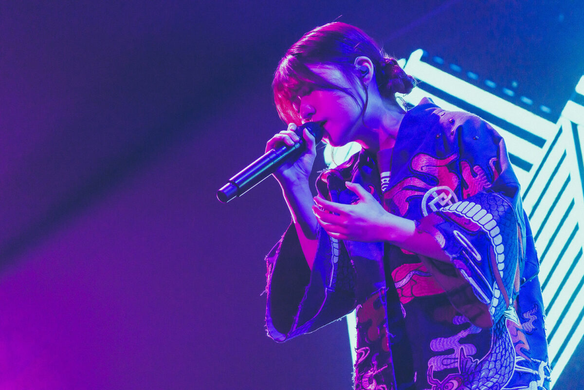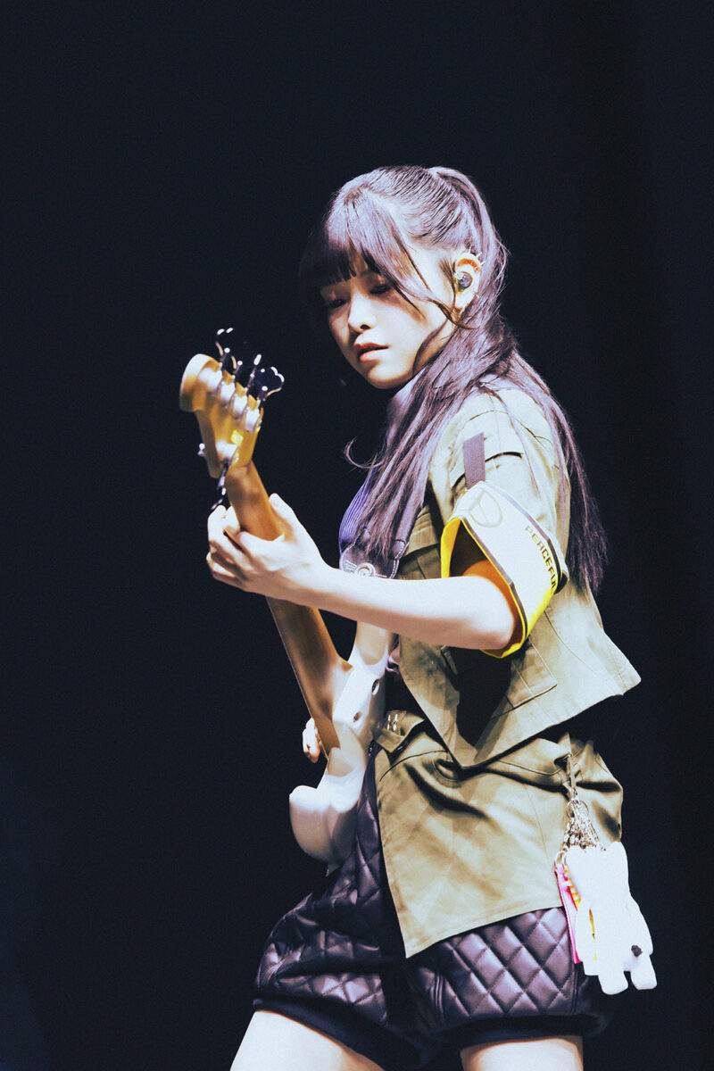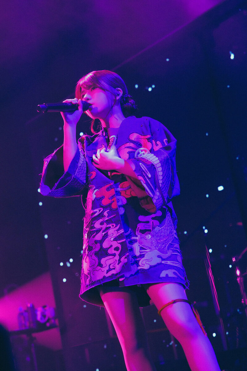 明るさと熱狂が共存した舞台は『極私的極彩色アンサー』へと続く。朱李の荒々しいベースを起点に、メンバーが縦横無尽にステージをスイッチする様子は、フロアにさらなる興奮を注ぎ込んだ。