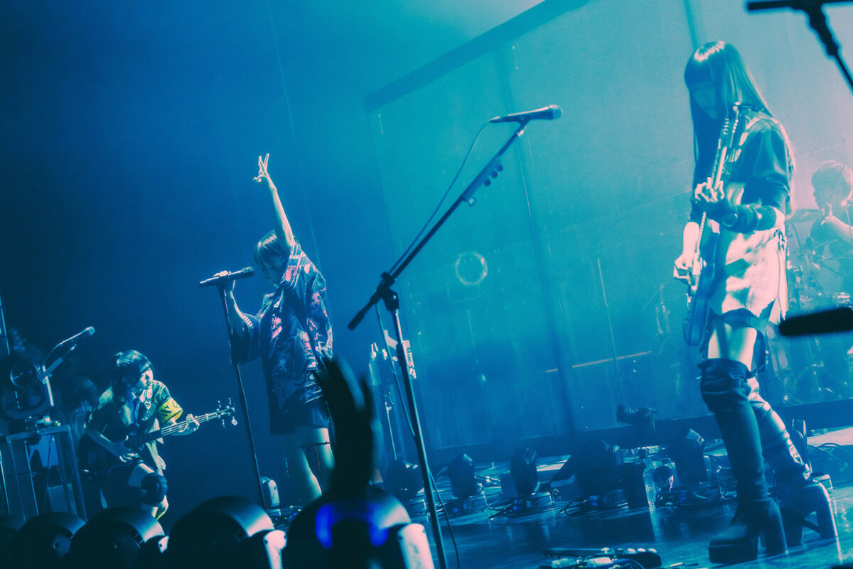 間髪入れずに『ダレモ』の爆音が響きわたると、たまらずオーディエンスからもクラップが発生。曲終わりでは理名が「私たちのライブは、初っ端から結構飛ばしがち。乗り遅れ注意です!」と声を上げる。その宣言を回収するかのように、ライブ初披露曲『蜃気楼ニ問フ』を解き放ち会場のボルテージを上げた。