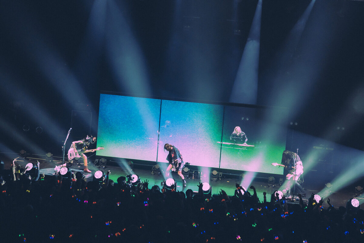 ラストMCでは、ツアーの振り返りをしようとするメンバーをよそに、突然ステージがまっくらに。フロアからのどよめきの声は、スクリーンに移った「特報」で歓喜の声へと変貌した。