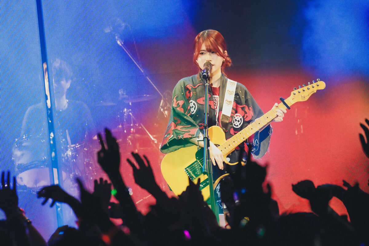 バックスクリーンには、楽曲とリンクしたアニメ「ガールズバンドクライ」の映像が投影。原曲より前に出た朱李のベースに下腹を刺激されながら、観客はリアルとアニメを自由に行き来する。